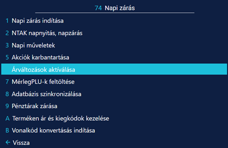 Ha minden árváltozást berögzítettünk a cikktörzsben, amit szerettünk volna, akkor az Árváltozások aktiválása menüpont (746) futtatásával lehet beaktiválni a rögzített árváltozásokat.