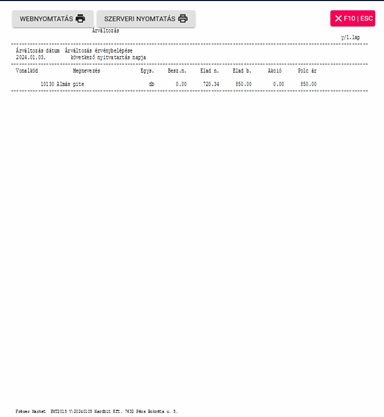 Lehetőség van rá, hogy ezt a listát kinyomtassuk (ha van beállítva nyomtató a programhoz, ennek a beállításában az ügyfélszolgálat tud segíteni, ha rendelkezünk vágott lapos nyomtatóval) vagy mentsük azt.