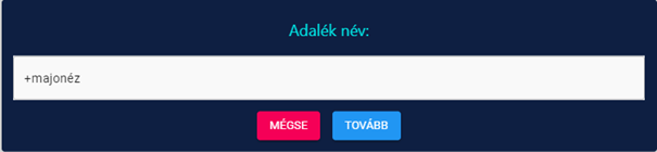 A kiválasztott termék után feldobja a választható feltéteket.