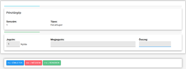 A megjelenő ablakban az összeg mezőbe be kell írni, a kassza nyitó összegét.