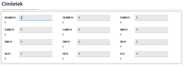 Az F6/Címletek gomb megnyomásával lehetőségünk van rá, hogy a címleteket is megadjuk,