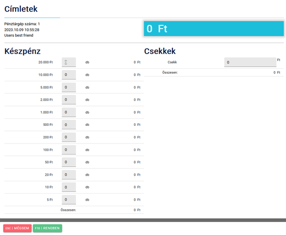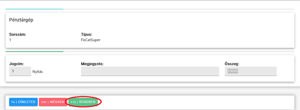 Végül a pénztárnyitás az F10/Rendben gomb megnyomásával hagyható jóvá: