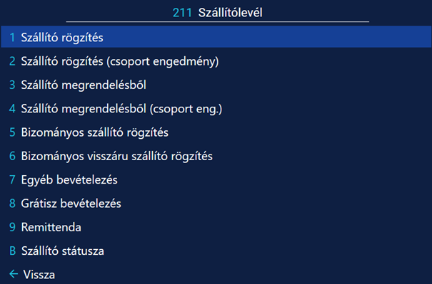 Ebben a menüpontban lehetőségünk van adott bevételezést egy az egyben betölteni a szállítóba.