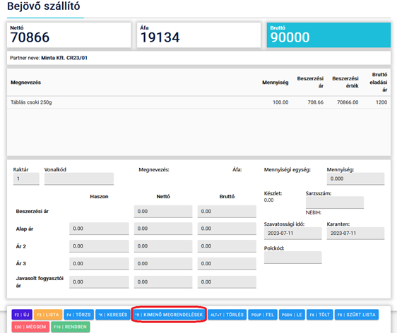 Ehhez a Ctrl + R billentyűkombinációt vagy a kimenő megrendelések gombot kell megnyomni.