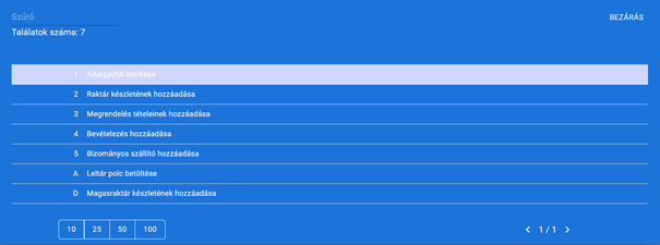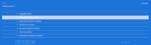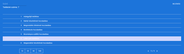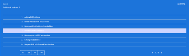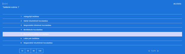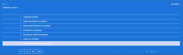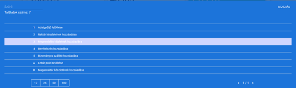 A dátum megadását követően a tovább gombra nyomva megjelennek listázva a korábbi bevételezések, amikből ah egyet kiválasztunk, akkor a rendszer automatikusan betölti az abban szereplő tételeket a hozzájuk tartozó mennyiséggel együtt.