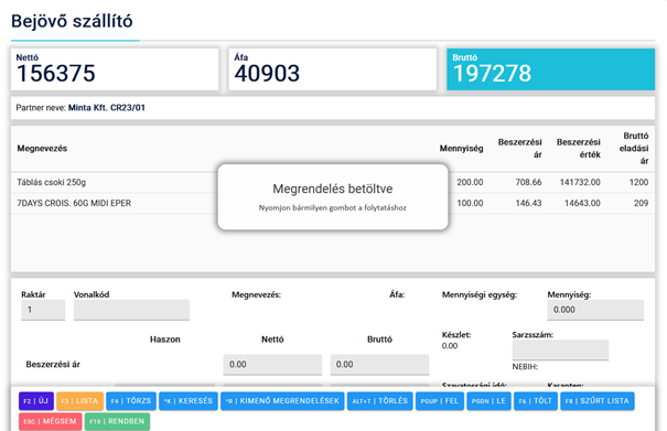Ha minden tételt hozzáadtunk a szállítóhoz, akkor az F10/rendben gomb megnyomásával rögzíthetjük azt.
