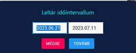 Ha rámegyünk a menüpontra az alábbi intervallum megadó ablak ugrik fel, ami segíti a szűrést: