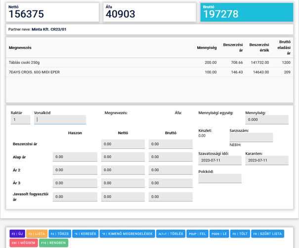 - Az egyik lehetséges mód az, hogy kézzel visszük fel a számla alapján a cikkeket az adott mennyiséggel.